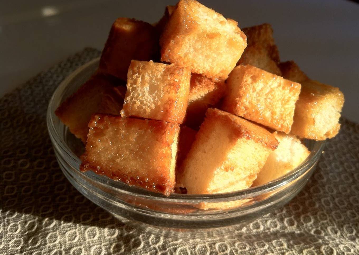 - Cut the bread into your desired shapes. I cut into 2 cm cubes this time. Even if you are using only the crusts, cut into your desired lengths.