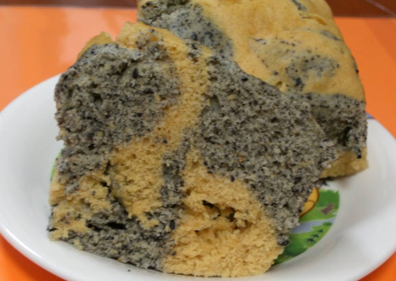 Sesame and Kinako Marbled Japanese Flavored Steamed Bread Made in a Microwave