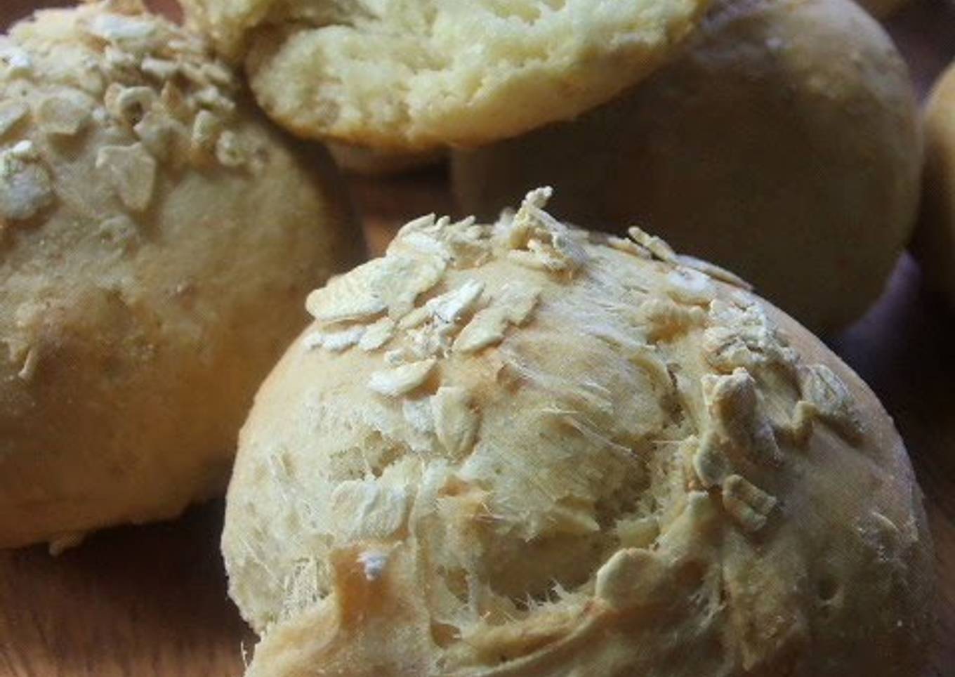 - Divide the dough into 8 portions, and roll into balls. Dab on a bit of water and sprinkle the surfaces with oatmeal to your liking.