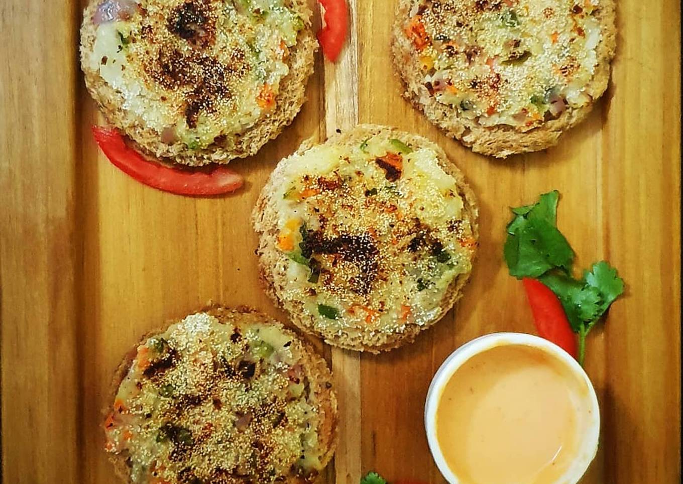 - Take bread slices and with the help of a cookie cutter cut the breads into round.