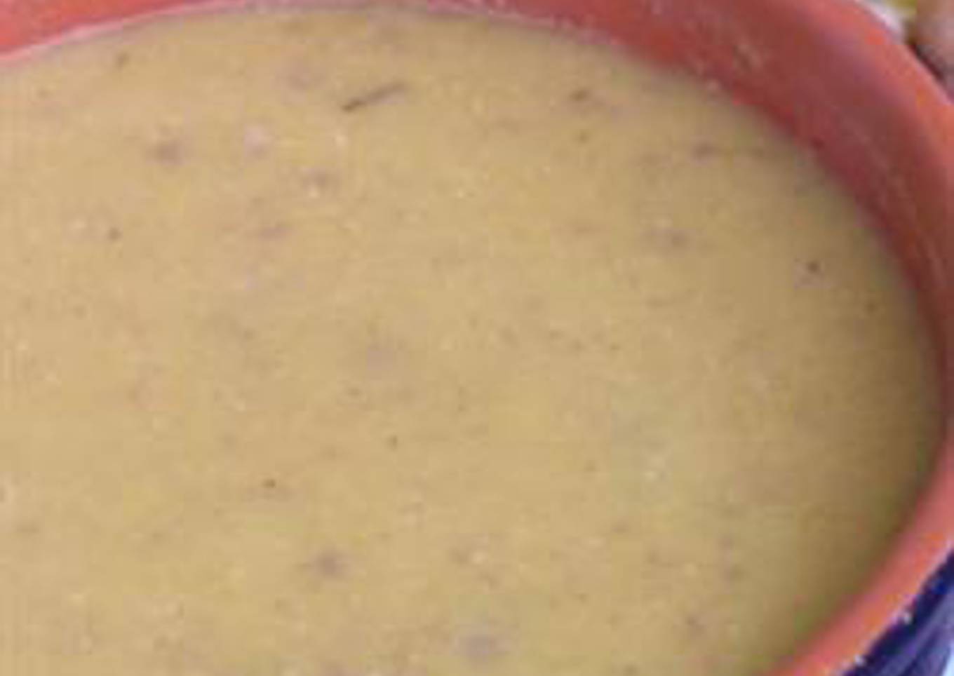 A smooth pureed brown lentil soup. It tastes best with a squeeze of lemon or a pinch of cumin. The Lebanese comfort soup!