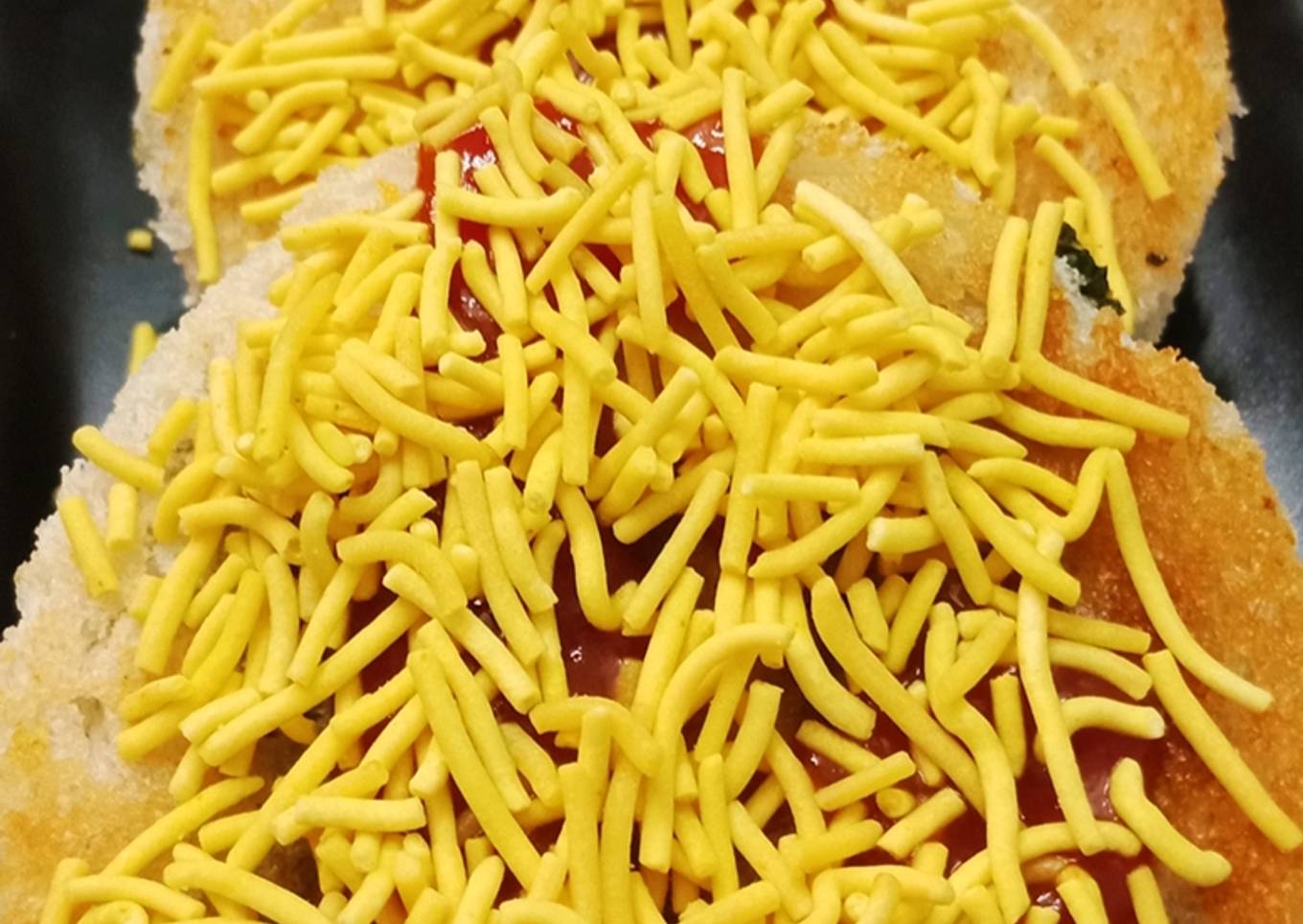 - Spread mint chutney at one side, schezwan chutney on other.. Fill The stuffing. Press after filling it and grill over nonstick greased skillet till crisp brown.. Serve hot with drizzle of ketchup and sev.. Usual sandwich in a different way