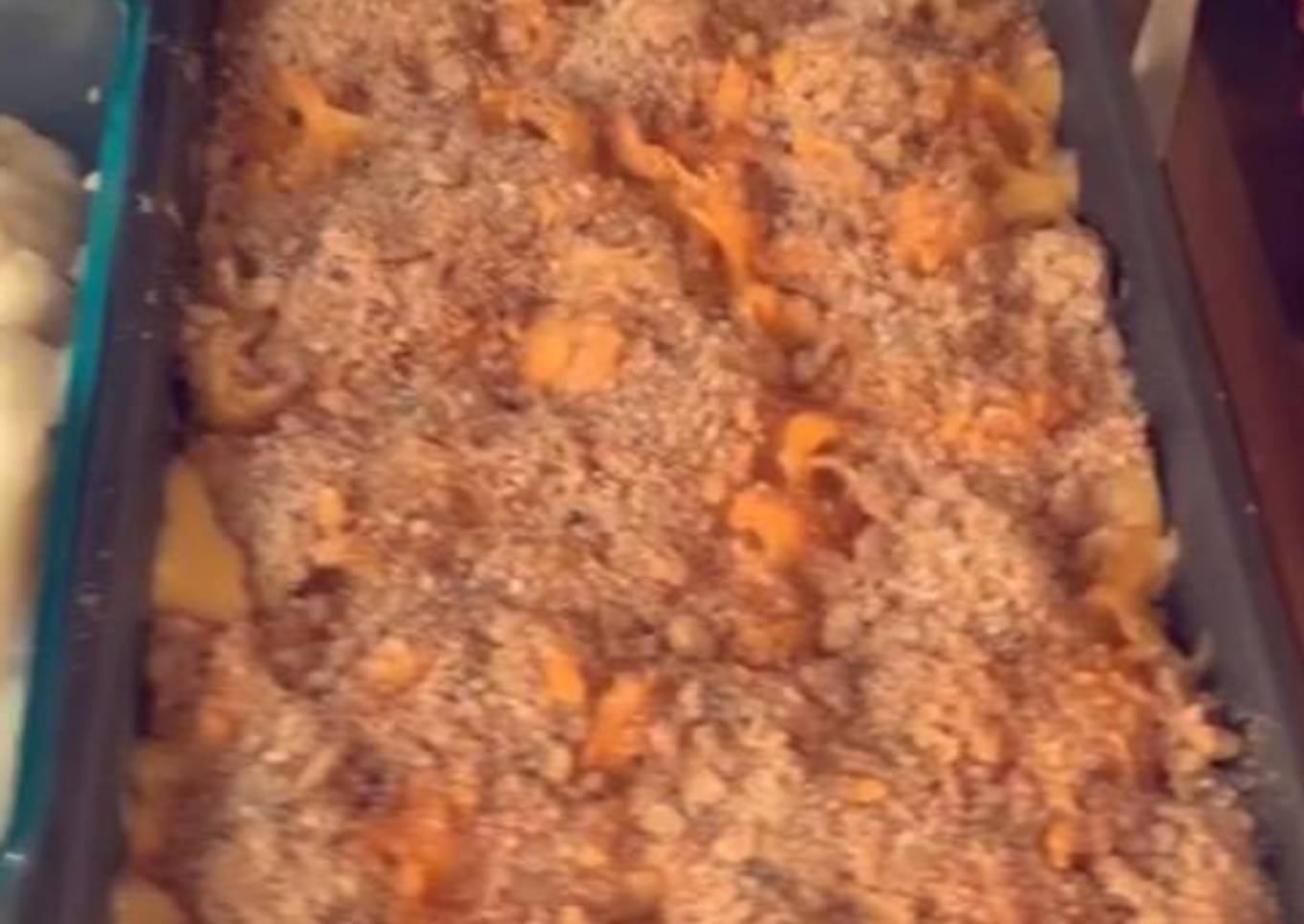 - Put macaroni in a large, casserole dish and pour the sauce on top. Stir well.