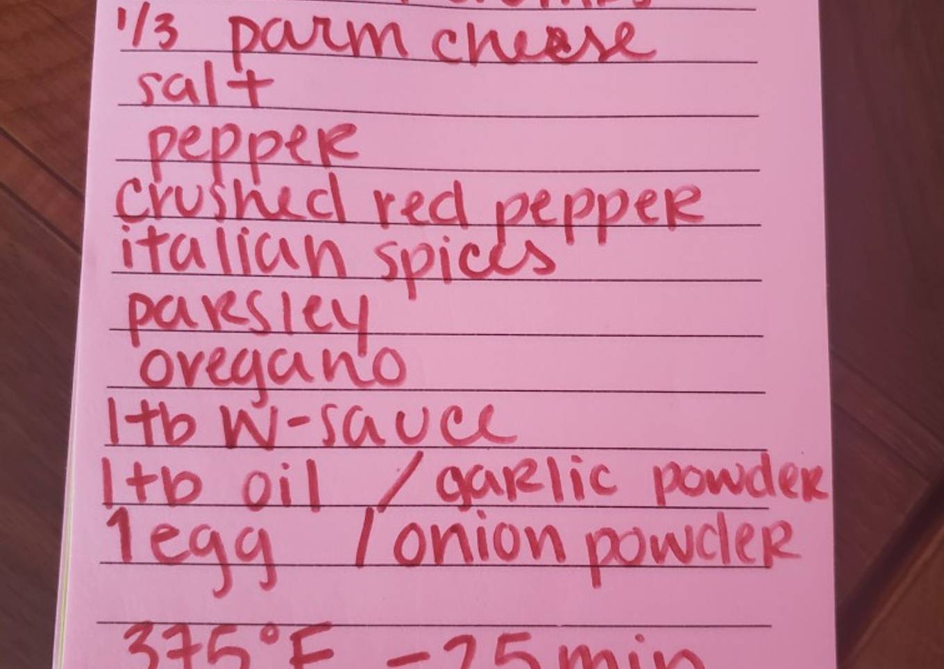 - 1/3 C grated parmesan